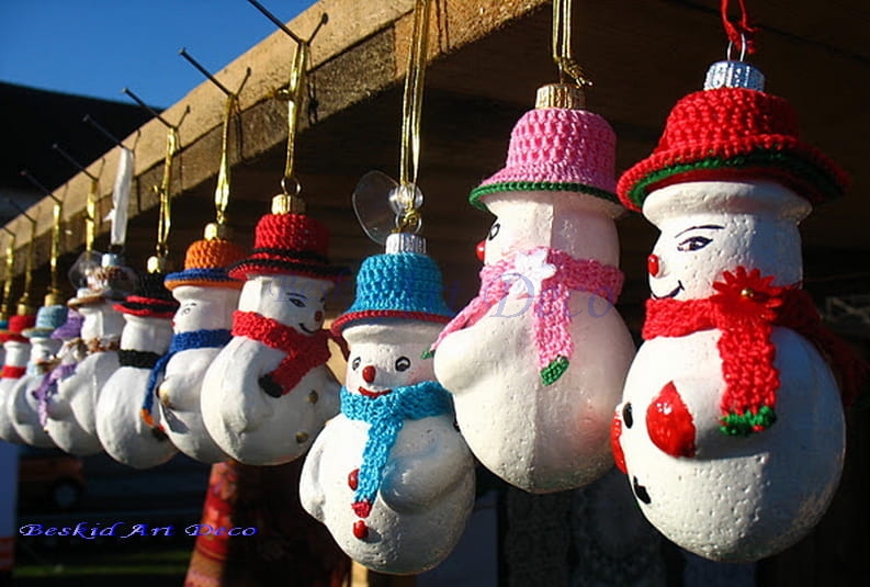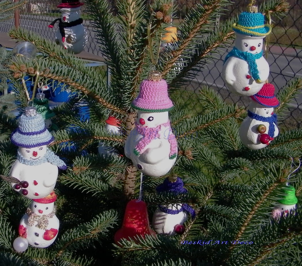 i szaliki ,Bałwanki styropianowe malowane farbą ekologiczną by uzyskać połysk
