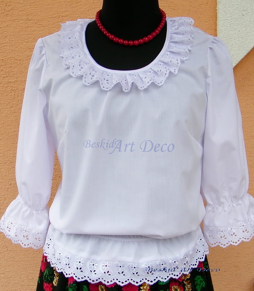 Bluzka biała z etaminy (płócienko bawełniane z niewielka domieszką innych włókien) z haftem bawełnianym rozmiar S,M,L,XL (r.36-46)