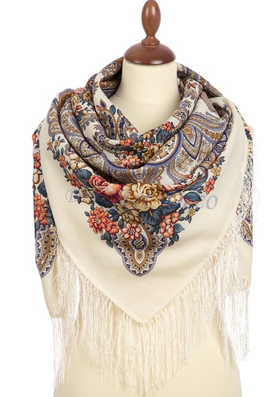 wymiar około szerokość 125 cm , długość 125cm + ok. 10 cm- frędzle