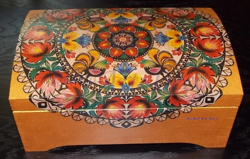 Kufer drewniany ręcznie zdobiony