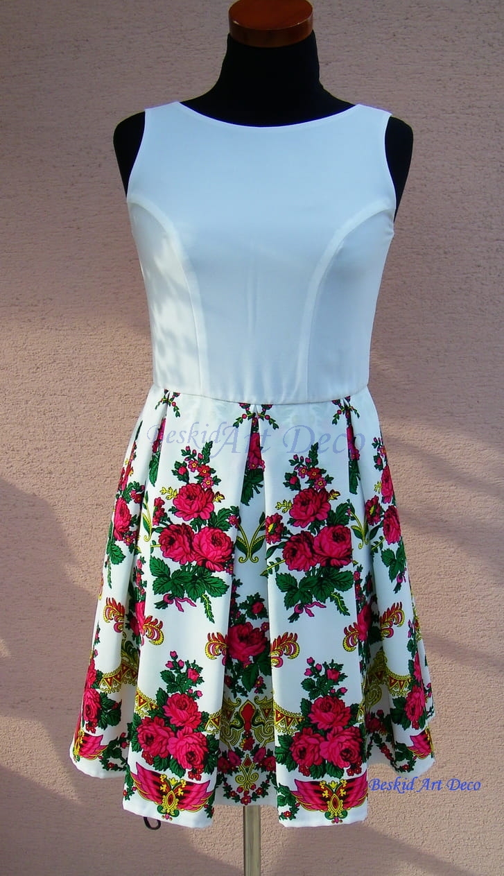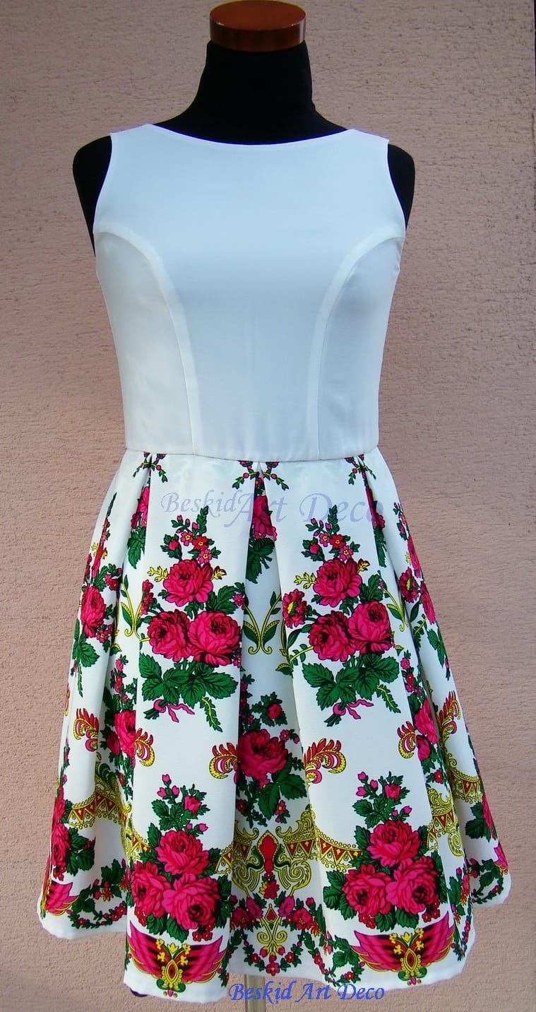 Możliwa jest zmiana koloru sukienki przy zachowaniu tego wzoru kwiatowego przy spódnicy.