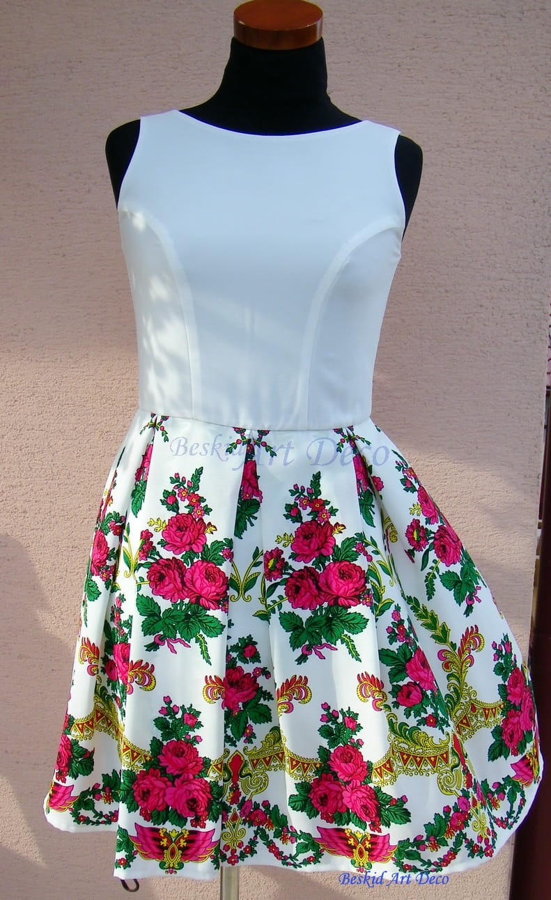 Krój sukienki dostosowany do rozmiaru dziewczęcego oraz damskiego max rozmiar 44