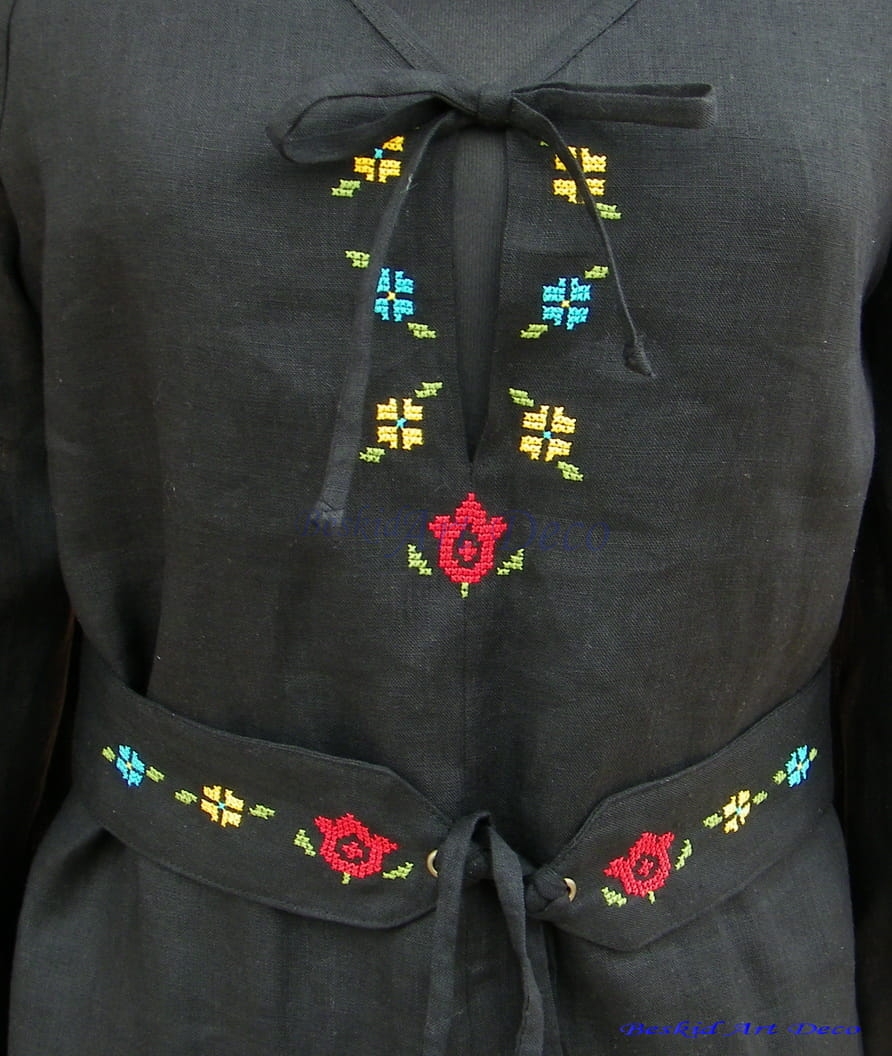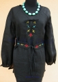 Tunika czarna Folk- 100% naturalny len z haftem ręcznym
