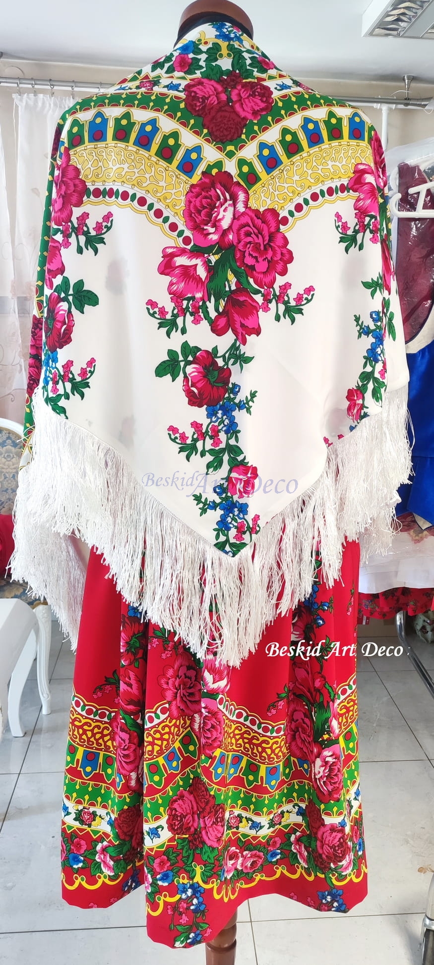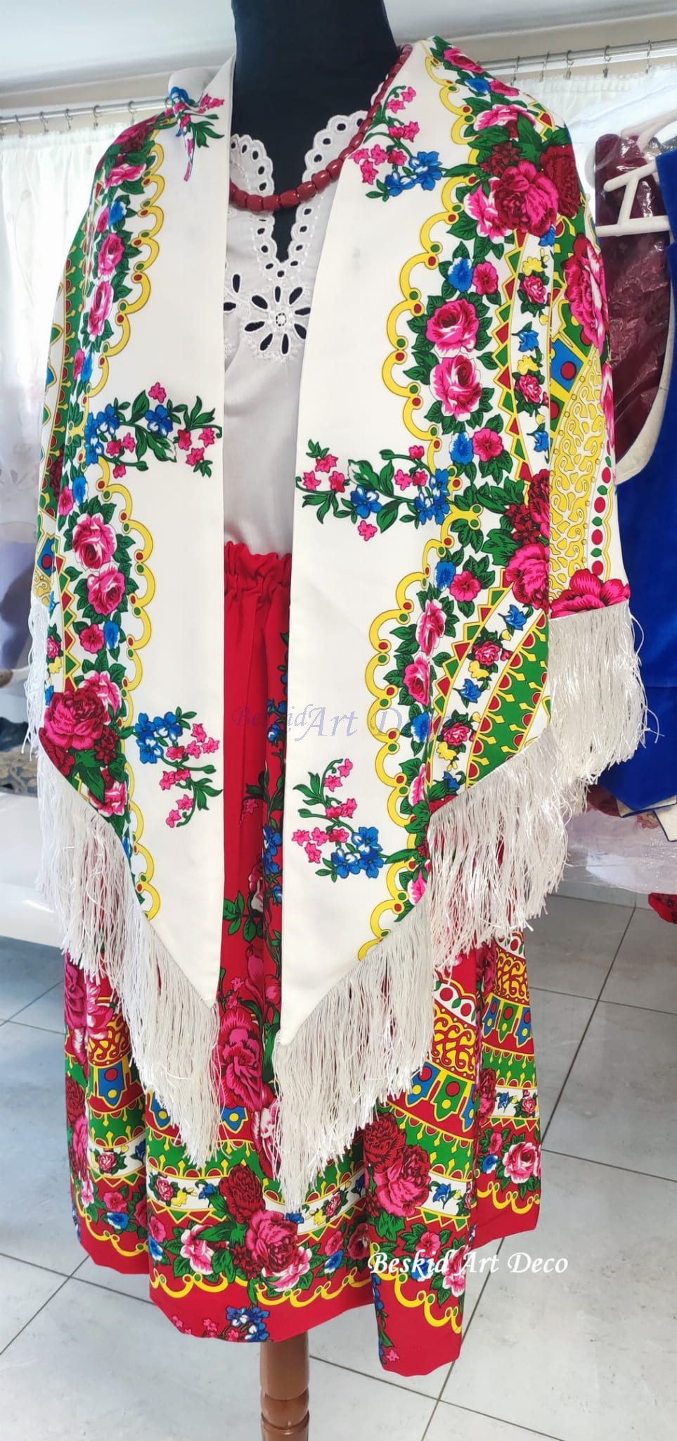 Chusta dwustronna z jednej strony bogaty wzór kwiatowy