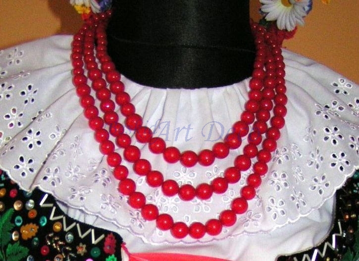 korale czerwone ,do stroju ludowego, Folk,Etno - średnie,dziewczece 3 sznury, tworzywo